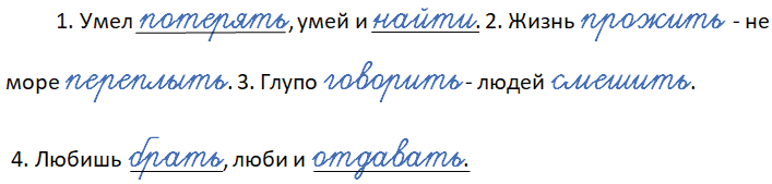 1. Умел ___, умей и ___ (найти, потерять). 2. Жизнь ___ - не море ___ (переплыть, прожить). 3. Глупо ___ - людей ___ (смешить, говорить). 4. Любишь ___, люби и ___ (отдавать, брать).