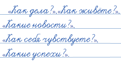 «Как дела?», «Как живёте?», «Какие новости?»,
