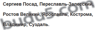Прочитайте текст Н. Орловой. Выпишите названия городов, входящих в Золотое кольцо
