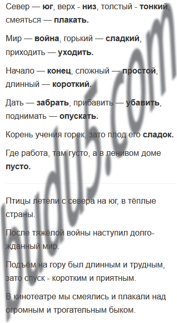 Север - ..., верх - ..., толстый - ..., смеяться - .... .