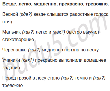 Выпишите из орфографического словарика в конце учебника все наречия, составьте и запишите предложения с ними. Поставьте вопросы к наречиям.