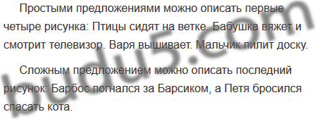 Какой рисунок вы описали бы простыми предложениями, а какой — сложными? Почему? Запишите эти предложения.
