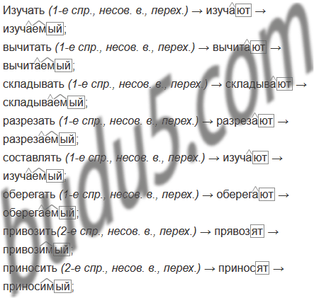 Образуйте страдательные причастия настоящего времени. Запишите словообразовательные цепочки. Выделите в словах суффиксы и окончания, обозначьте спряжение глаголов, их вид и переходность.