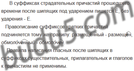 • Сформулируйте правило написания е и ё после шипящих в суффиксах страдательных причастий.