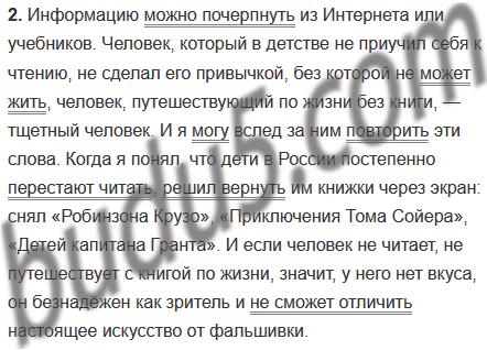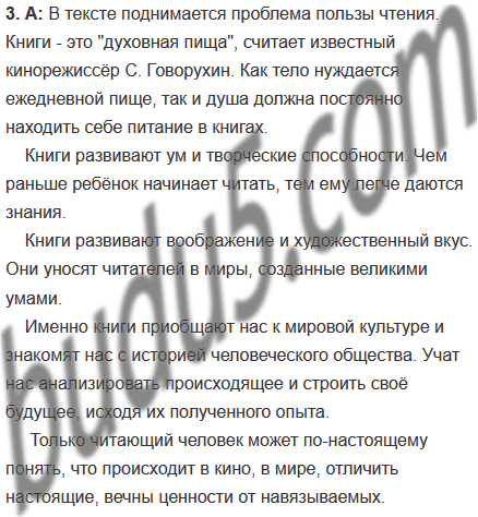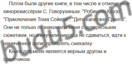 | 3. Выскажите письменно своё отношение к проблеме, поднятой в тексте. | 3. Напишите сочинение на тему «Книга в моей жизни». |