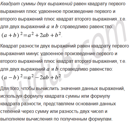 Используя формулу квадрата суммы или формулу квадрата разности, вычислите: