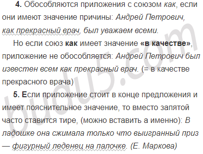 | 4. Обособляются приложения с союзом как, если они имеют значение причины. Примечание. Если союз как имеет значение «в качестве», приложение не обособляется. | Сергей Петрович, как опытный врач, быстро поставил диагноз. НО: Сергей Петрович известен как опытный врач (= в качестве опытного врача). |