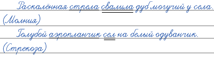 Прочитайте. Составьте из каждой группы слов предложения-загадки о молнии, об облаках, о стрекозе.