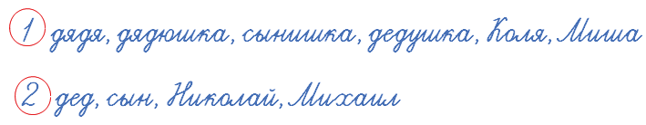 Дед, дядя, дядюшка, сын, сынишка, дедушка, Коля, Николай, Миша, Михаил.