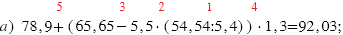 а) 78,9+(65,65-5,5•(54,54:5,4))•1,3;