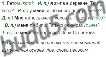 2. Подчеркните выделенные местоимения, поставьте к ним вопросы и определите падеж. Сравните основы местоимений.